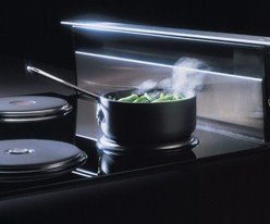 - Automatically raises into position and turns unit on with the touch of a button. Disappears flush with the cooktop surface